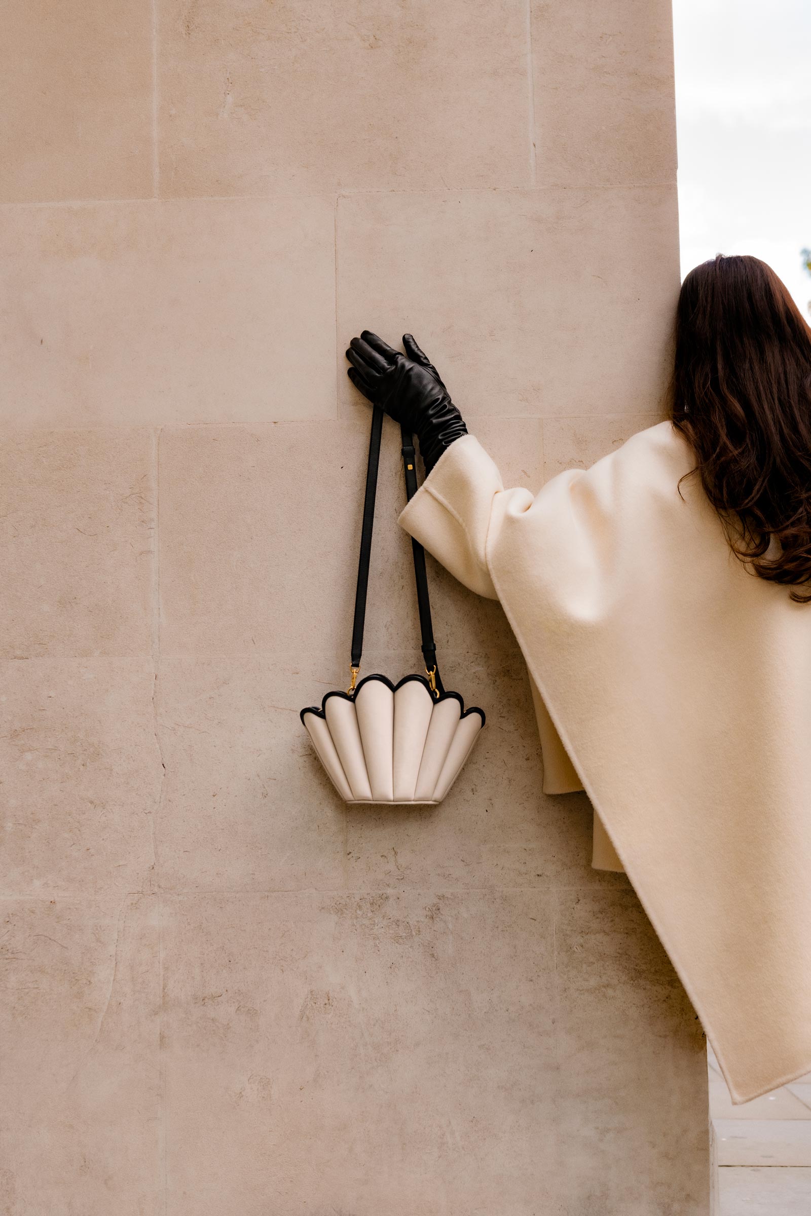 Evolved from our Seashell Tote, this compact crossbody carries the same scalloped contours in a smaller proportion. Each panel is hand-stitched to define its smooth, curved body. It features a zip closure, a suede-lined compartment inside, and detachable top handle and shoulder strap. All straps can be removed for a minimal, clutch-like use.