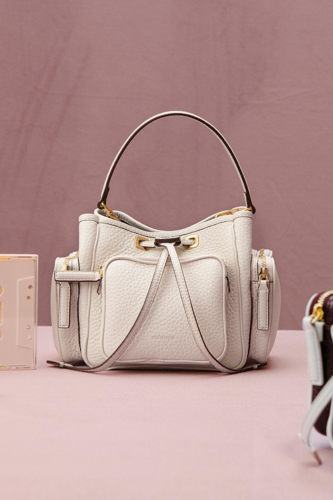 Maximalism, zero chaos - Quad is a cubic rethink of the classic bucket bag. Built on a square base and rising into a soft-edged cube, it brings structure without rigidity. Each of its four faces features a zippered pocket, keeping essentials precisely compartmentalized. The drawstring top closes with ease, while the removable strap and handle offer flexible ways to carry.