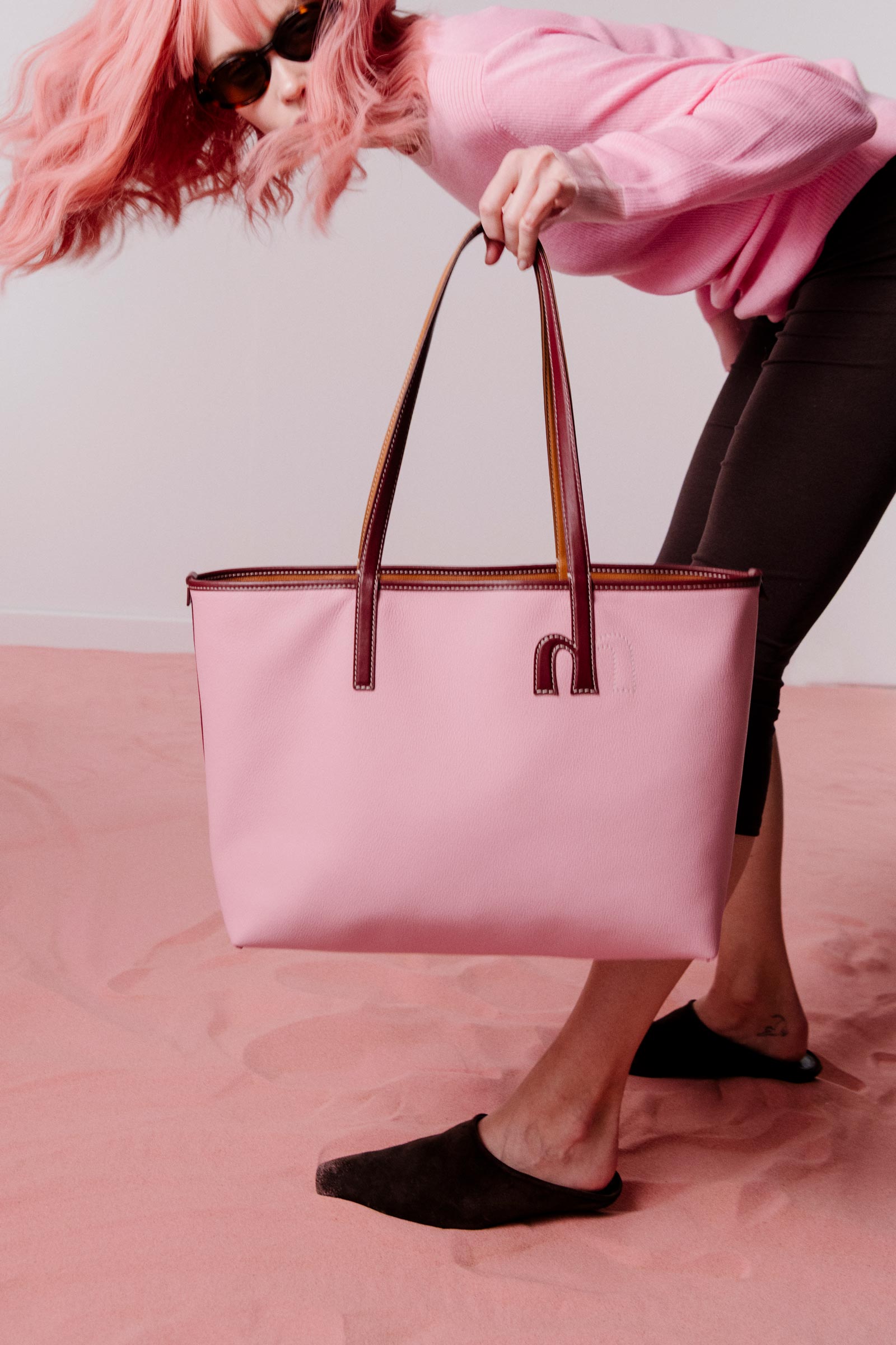 M Tote is a soft, everyday tote designed for effortless versatility. Its reversible construction allows the bag to be worn inside-out, offering two distinct looks within a clean, minimal silhouette. Crafted from tumbled grained leather, it feels supple while maintaining its structure. It comes with a detachable pouch featuring a snap closure for essential storage.