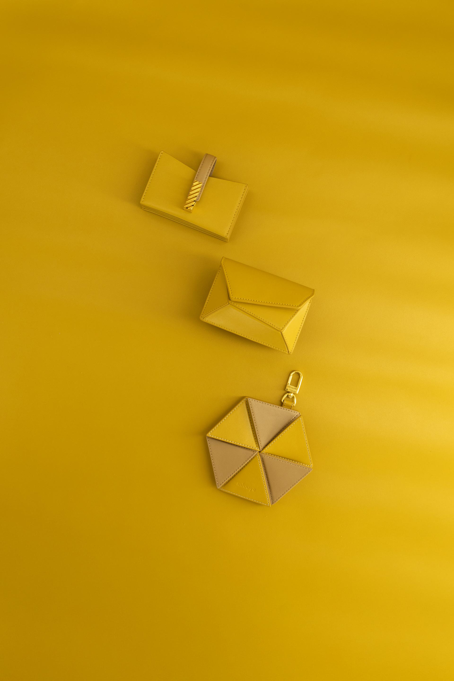 A playful fusion of design and function, the Hexagon Charm stands out with its windmill-inspired spinning leather panels. The back offers convenient card slots, making it as practical as it is playful. Equipped with a hook for easy attachment, it adds a whimsical touch to any bag or accessory.
