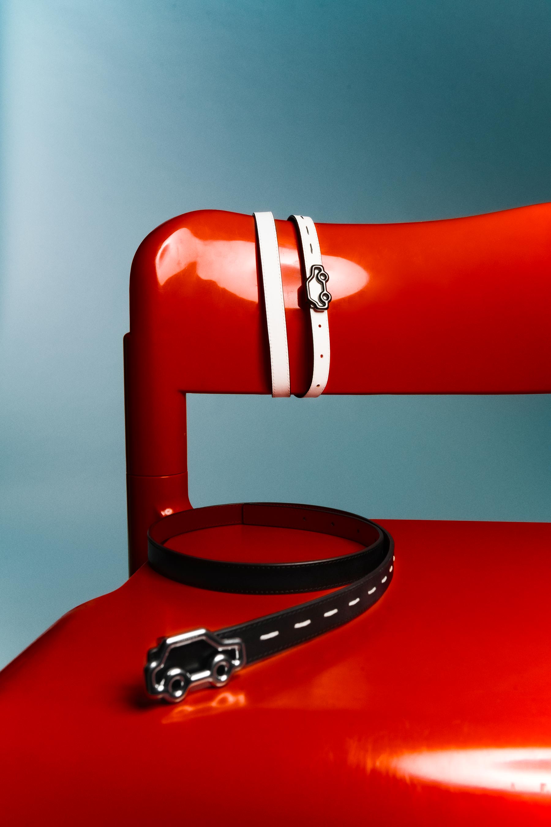 The “Hit the Road” Belt pairs a sculptural car-shaped buckle with a smooth leather strap detailed with subtle road markings. The elements come together to form a continuous scene, an abstract car quietly moving along its path.Crafted with Mlouye’s precision in form and finish, the belt adds a graphic accent to everyday dressing. It can be worn as a functional piece or as an understated statement that adds character without overpowering the look.