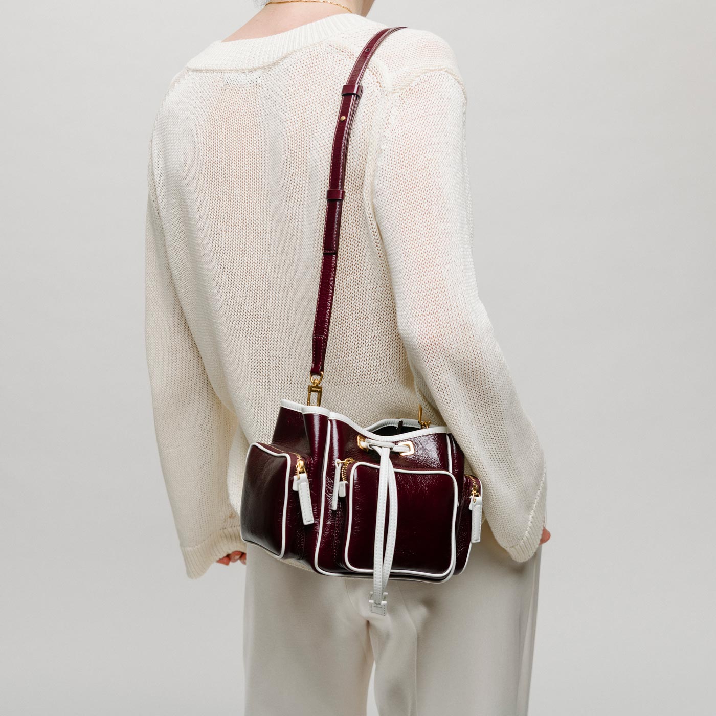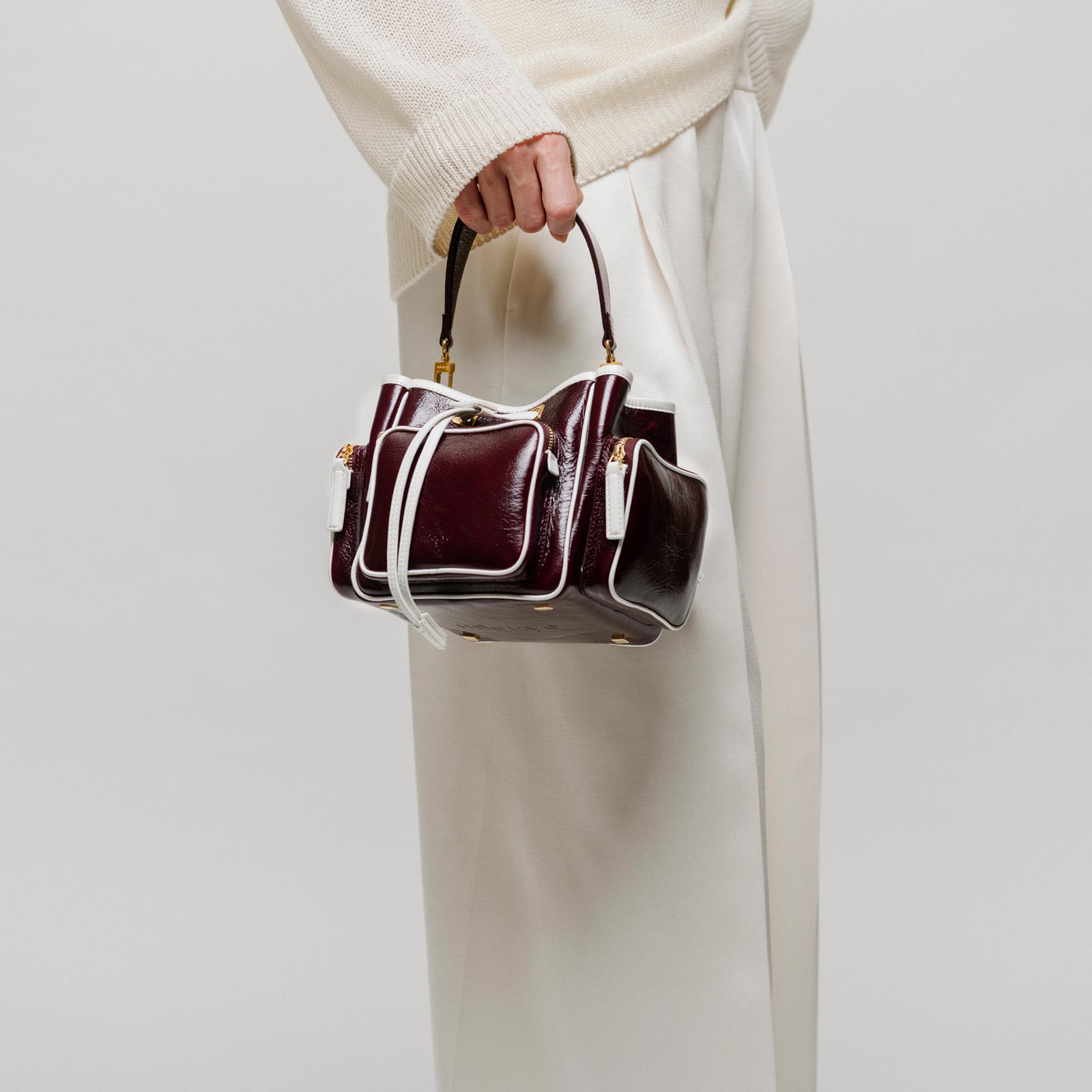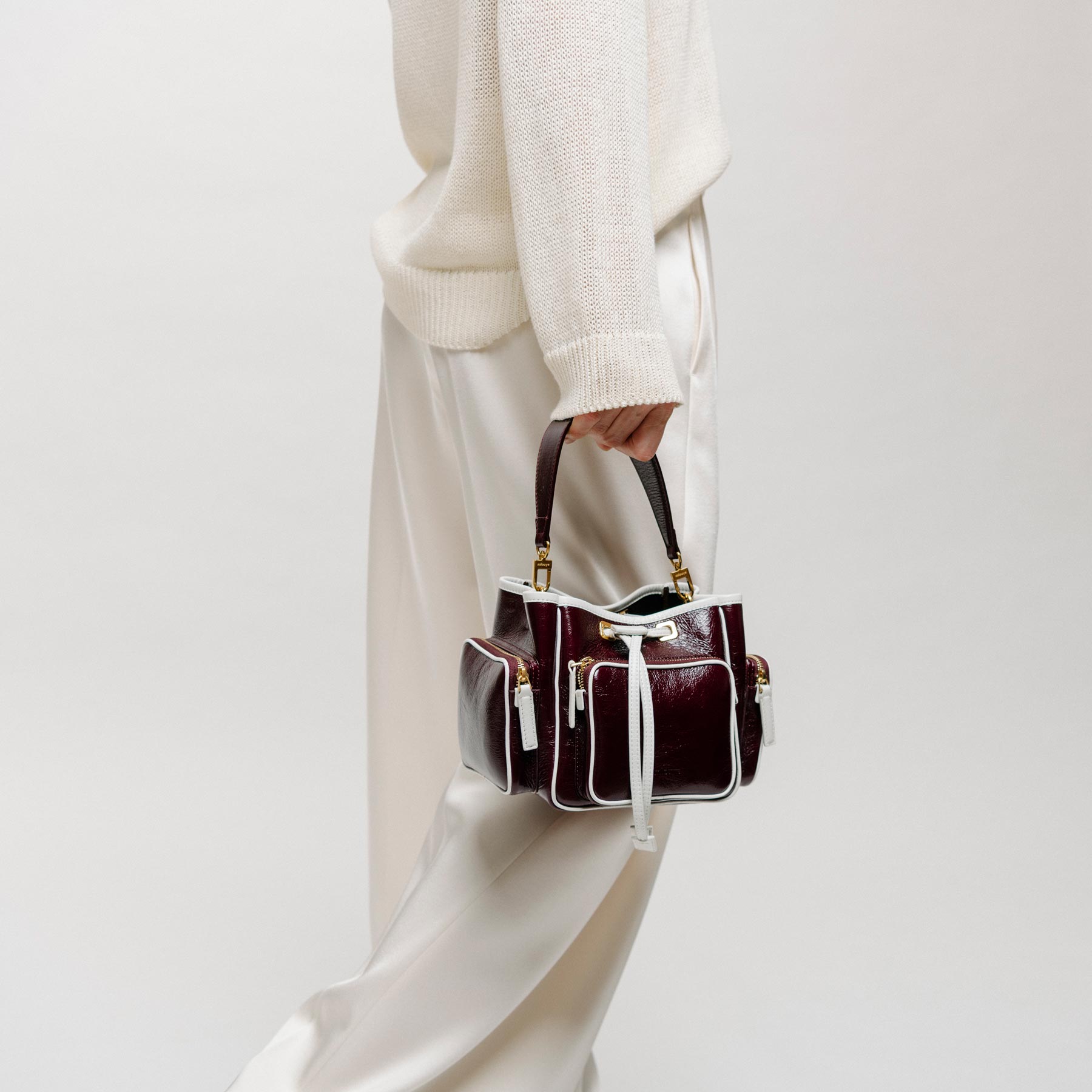 Maximalism, zero chaos - Quad is a cubic rethink of the classic bucket bag. Built on a square base and rising into a soft-edged cube, it brings structure without rigidity. Each of its four faces features a zippered pocket, keeping essentials precisely compartmentalized. The drawstring top closes with ease, while the removable strap and handle offer flexible ways to carry.